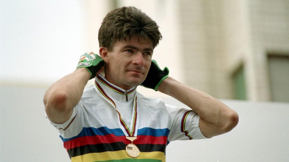 Le vittorie mondiali di Bugno, classe 1964, hanno una elemento distintivo comune legato al carattere introverso del corridore monzese. Per due volte Bugno batte Indurain, il dominatore del ciclismo di quegli anni con cinque Tour e tre Giri nel palmares, ma sempre in “punta di piedi” quasi a volersi scusare di aver battuto un corridore considerato più forti di lui.